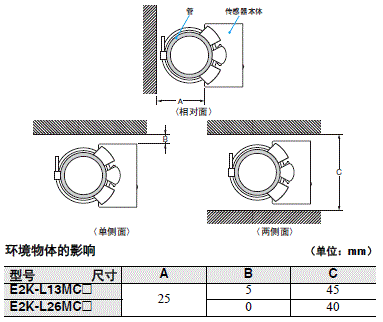 (E2K-L13MC□的管道直径φ8的纯水为±6mm)